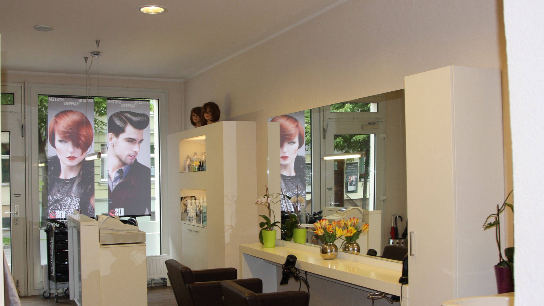 Unser über 100 Quadratmeter großes und modern eingerichtetes Geschäft mit 8 Bedienplätzen und einem separaten Kosmetikbereich liegt verkehrsgünstig in der Zeppelinstraße 142 in Potsdam-West. Unser freundliches und bestens qualifiziertes Team von 5 Mitarbeiterinnen, von denen sich jede auf verschiedenste Themenschwerpunkte spezialisiert hat und langjährige Erfahrungen mitbringt, erwartet Sie.